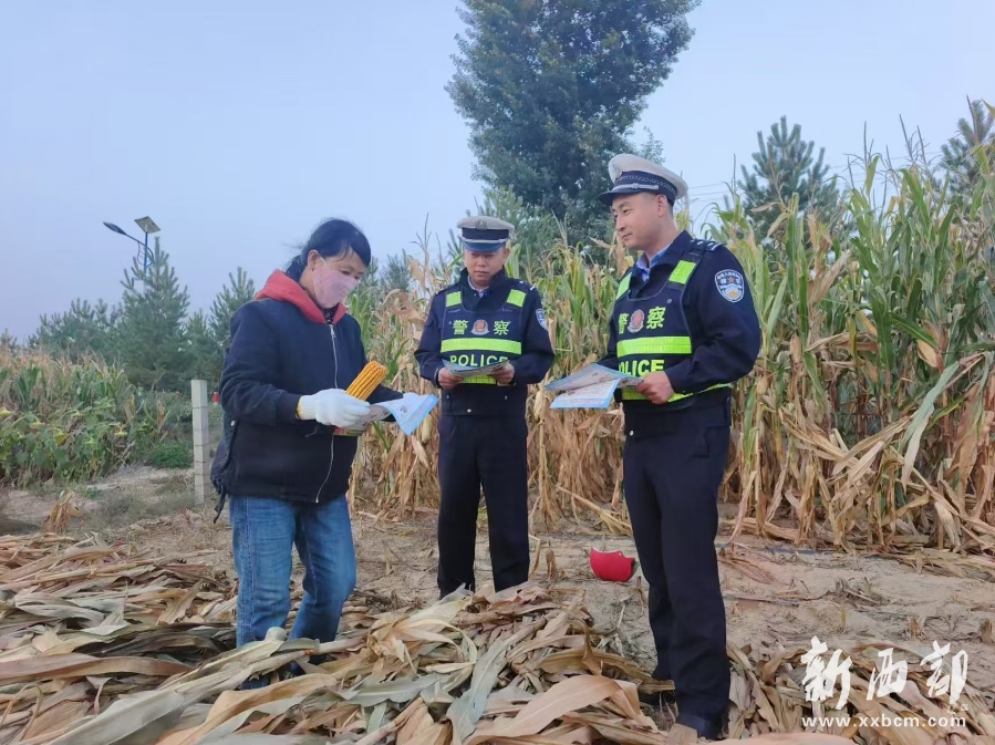 眼下,正值秋收農(nóng)忙時節(jié),靖邊公安適時調整警務部署,立足本地特色,開啟“秋收警務”,組建“宣講小分隊”,走進田間地頭,將安全防范知識送到群眾身邊。每次下田間,民警手里都少不了“老三樣”,一本警情記錄本,一疊意見征詢表,一摞宣傳單?!懊鎸γ妗绷憔嚯x宣傳反詐、禁毒、防騙、提升“九率一度”、交通安全等知識的同時,與群眾親切交談,仔細傾聽他們目前存在的困難和對公安工作的意見建議,耐心解答群眾提出的問題,進一步拉進了警民之間的距離。