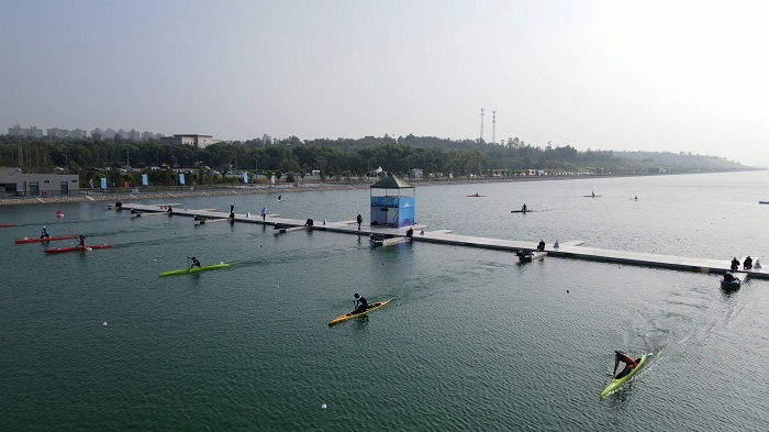 今年夏季,在榆林科創(chuàng)新城,水上運動中心湖水瀲滟,水面上摩托艇、皮劃艇來回穿梭,在愜意中帶走夏日的炎熱。這湖水就是依托榆橫礦區(qū)處理后的疏干水。
