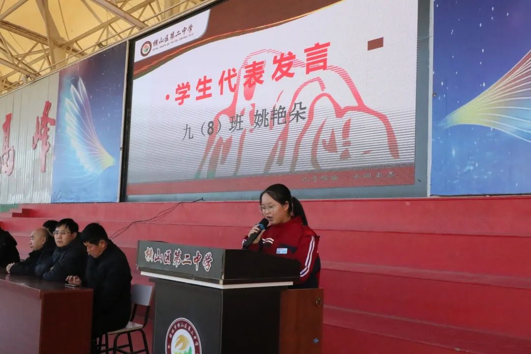 為鼓舞全體九年級(jí)學(xué)生干勁,激發(fā)學(xué)子們的雄心壯志,點(diǎn)燃鏖戰(zhàn)兩百日的豪情。11月29日下午,橫山二中舉辦2025屆期中表彰暨中考200日沖刺誓師大會(huì),校領(lǐng)導(dǎo)以及九年級(jí)全體師生出席本次活動(dòng),活動(dòng)由副校長(zhǎng)雷子曉主持。