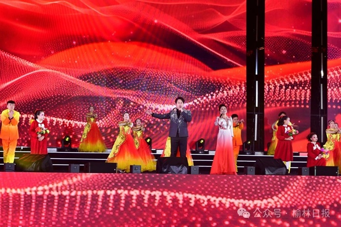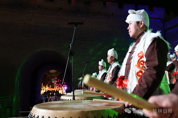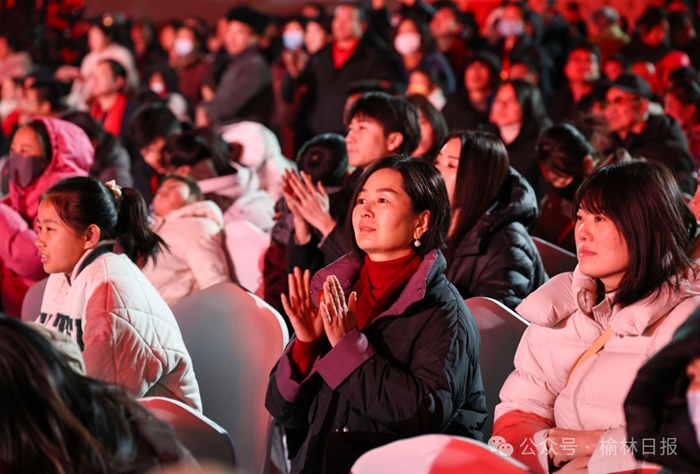 歌舞表演《美麗中國年》拉開了活動序幕,隨后榆林小曲《春暖江南人 留在榆林城》、橫山腰鼓表演《吉祥腰鼓》以及陜北民歌《東方紅》《山那邊》《信天游》等獨具榆林特色的非遺節(jié)目悉數(shù)登場,現(xiàn)場一派喜慶、祥和、熱烈的節(jié)日氛圍。