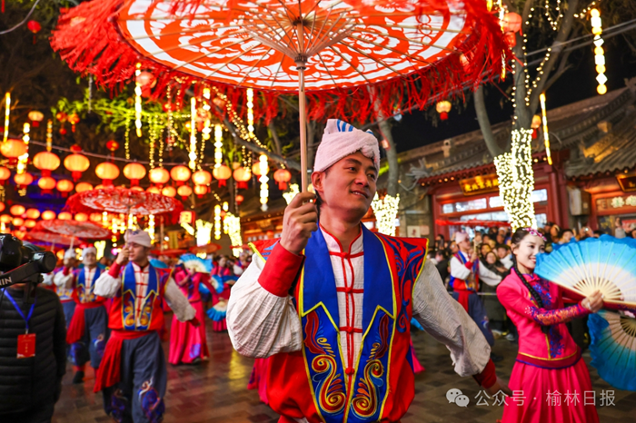 1月22日,由榆林市委、市政府主辦的2025“非遺賀新春 古城過大年”全國秧歌展演暨“陜北榆林過大年”活動啟動儀式在榆林古城步行街舉行。