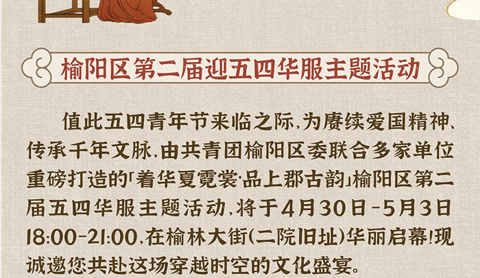 【官宣預(yù)告】榆陽區(qū)第二屆迎五四華服盛典來襲!著華服免費入場,穿越千年邂逅國潮盛宴!