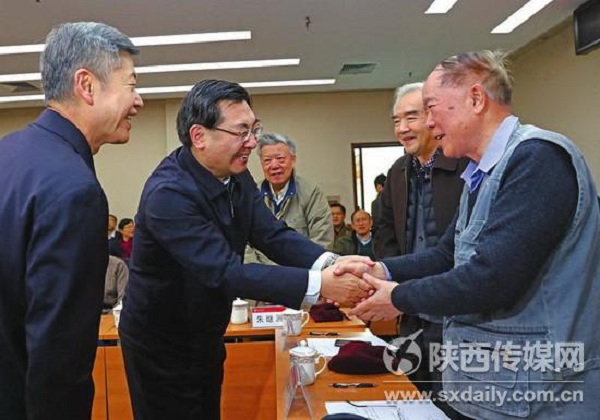 12月16日,陜西省委書記、省長胡和平來到西安交通大學(xué),向師生代表傳達(dá)習(xí)近平總書記重要指示,親切問候西遷老教授。 記者宋紅梅攝