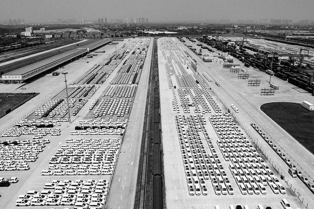 西安港內(nèi)等待運輸?shù)能囕v和集裝箱 記者 吳岸彪 攝