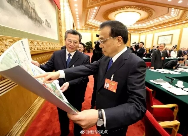 會場中,媒體報(bào)道出的一張圖片,引起了眾多人的好奇。在這張圖片上,西安市委書記王永康在向李克強(qiáng)介紹著一幅地圖,李克強(qiáng)則一只手舉著地圖,一只手指著地圖上的信息詢問著什么。