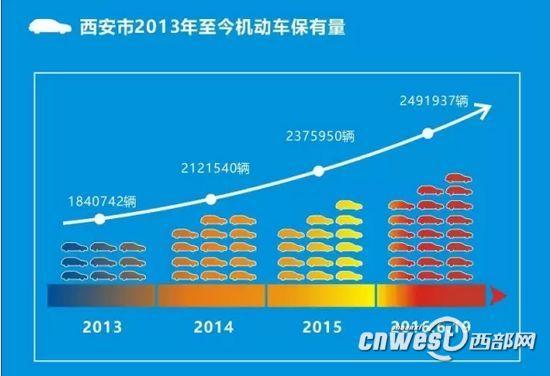 目前,西安市新車掛牌量每天在千輛左右,機(jī)動(dòng)車每年還在以30萬輛左右的速度增長(zhǎng)。2014年7月,西安機(jī)動(dòng)車保有量突破200萬輛,僅僅用了不到兩年時(shí)間,目前已超249萬輛,再過幾天,西安將迎來第250萬輛機(jī)動(dòng)車。伴隨著車輛的高速增長(zhǎng),道路資源有限、路網(wǎng)承載能力不足、交通參與者守法意識(shí)不強(qiáng)等因素導(dǎo)致的交通擁堵問題也日益凸顯。