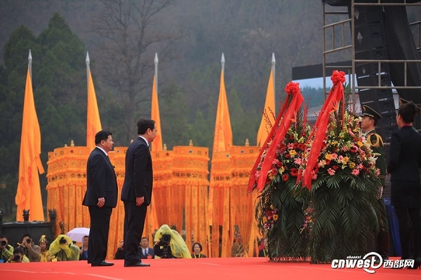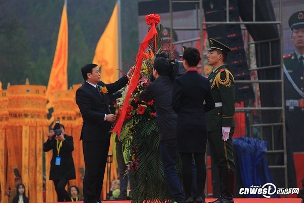 陜西省委書記婁勤儉代表中共陜西省委、省人大常委會(huì)、省政府、省政協(xié)和陜西各界敬獻(xiàn)了花籃。