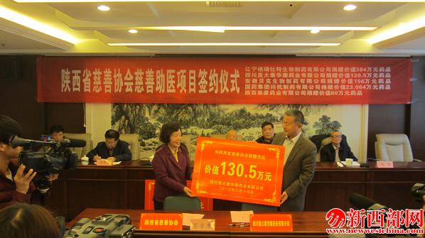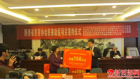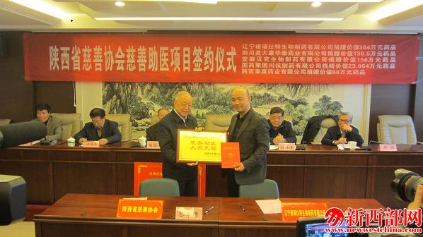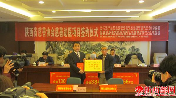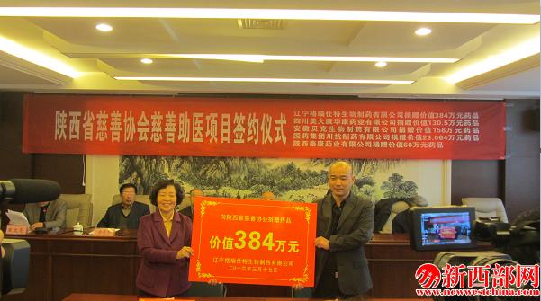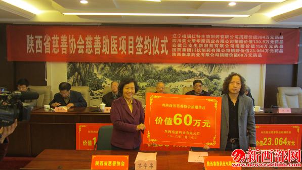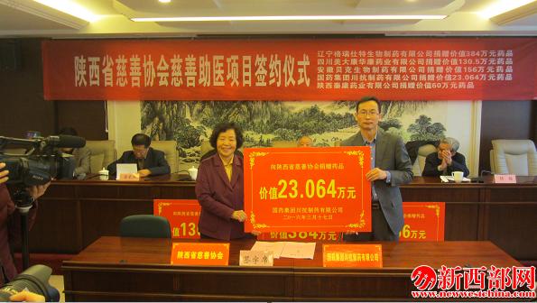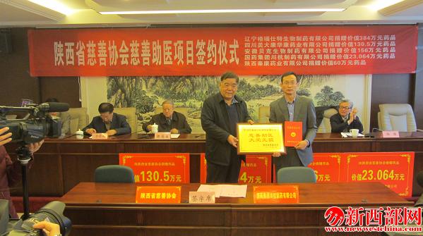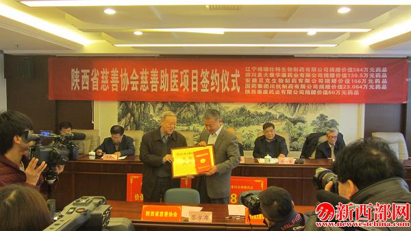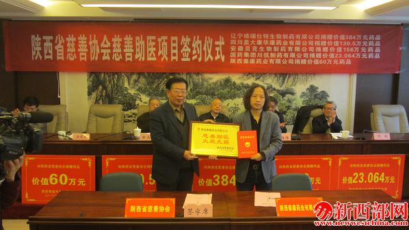 新西部網(wǎng)西安3月17日消息(王順利)陜西省慈善協(xié)會(huì)今天舉行助醫(yī)藥品援助項(xiàng)目捐贈(zèng)簽約儀式。省政府原常務(wù)副省長(zhǎng)、省慈協(xié)會(huì)終身名譽(yù)會(huì)長(zhǎng)徐山林,省人大常委會(huì)原副主任、省慈善協(xié)會(huì)名譽(yù)會(huì)長(zhǎng)陳再生,省政協(xié)原副主席、省慈善協(xié)會(huì)名譽(yù)會(huì)長(zhǎng)陸棟,省慈善協(xié)會(huì)會(huì)長(zhǎng)劉維隆,副會(huì)長(zhǎng)李榮杰、張文亮、張鳳英、孫忠信、張曉菊等出席。省慈善協(xié)會(huì)常務(wù)副會(huì)長(zhǎng)李榮杰發(fā)表講話,副會(huì)長(zhǎng)張文亮主持會(huì)議。