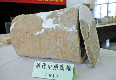 陜西富平縣居民曾在取土?xí)r集中發(fā)現(xiàn)金代陶棺12具,當(dāng)?shù)匚奈锊块T最新披露,這些棺蓋用建筑材料滴水瓦代替的陶棺,應(yīng)為當(dāng)時(shí)寺院僧人的葬具,對(duì)研究當(dāng)時(shí)僧人的喪葬習(xí)俗提供了研究資料。