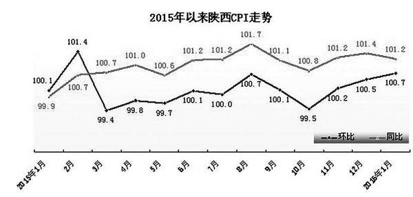 昨日,來(lái)自國(guó)家統(tǒng)計(jì)局西安調(diào)查隊(duì)調(diào)查,2016年1月份,西安居民消費(fèi)價(jià)格同比上漲1.3%,較去年同期由降轉(zhuǎn)升;環(huán)比上漲0.5%,漲幅較上月擴(kuò)大。(記者 張維)