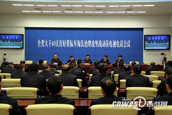 11月11日,陜西省公安廳召開“全省大干40天打好黃標(biāo)車淘汰治理攻堅(jiān)戰(zhàn)動(dòng)員電視電話會(huì)議”,各市、縣(區(qū))設(shè)分會(huì)場參加會(huì)議。