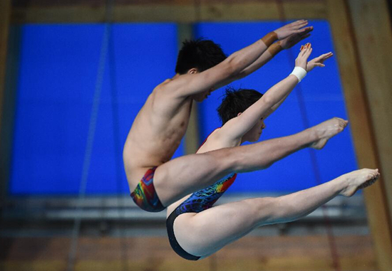 7月25日晚,2015年喀山游泳世錦賽繼續(xù)展開第二個比賽日的爭奪,在混合雙人十米臺的比賽中,中國隊獲得了本屆世錦賽的首金。來自陜西小丫司雅杰與搭檔臺曉虎以350.88分奪冠。