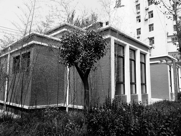 昨天中午,針對(duì)市民薛先生反映的情況,記者來(lái)到西安經(jīng)九路與南二環(huán)交會(huì)處東北角,一座外觀上看十分氣派的公共廁所矗立在綠樹(shù)叢林間。沿著一條寬約2名的林蔭小道向北穿過(guò)頭頂一座木架結(jié)構(gòu)的遮陽(yáng)景觀棚來(lái)到公廁門(mén)前,空曠的院子里放著一個(gè)盛滿水的洗臉盆,公廁東西兩邊是衛(wèi)生間,中間是管理員休息間,但房門(mén)全部緊鎖。