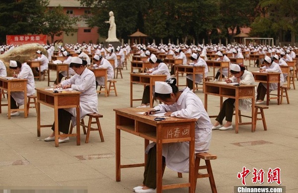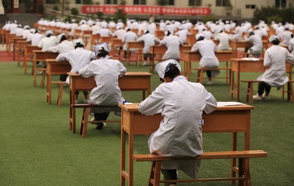 寶雞一職校千名準(zhǔn)護(hù)士室外考試無(wú)人監(jiān)考
