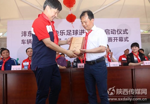 車輛廠小學校長呂選寧授予西安優(yōu)柯足球俱樂部青訓(xùn)營榮譽牌