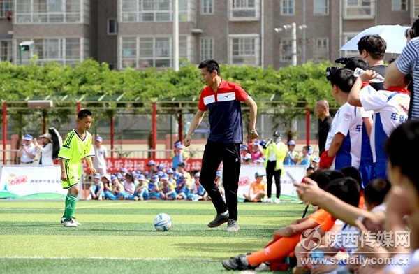 5月18日下午,嚴天健、王寶山、葉保增、江洪、周伯誼等十余位陜西足壇響當當?shù)墓桌蠈R聚西安灃東新城車輛廠小學,在參加西安灃東新城“快樂足球進校園”啟動儀式的同時,共同見證學校第十二屆“校長杯”足球聯(lián)賽的開幕。當日,西安優(yōu)柯足球俱樂部作為車輛廠小學足球青訓(xùn)營建設(shè)方,還帶來一批足球教練員,為學生們上了第一堂寓教于樂的足球課。