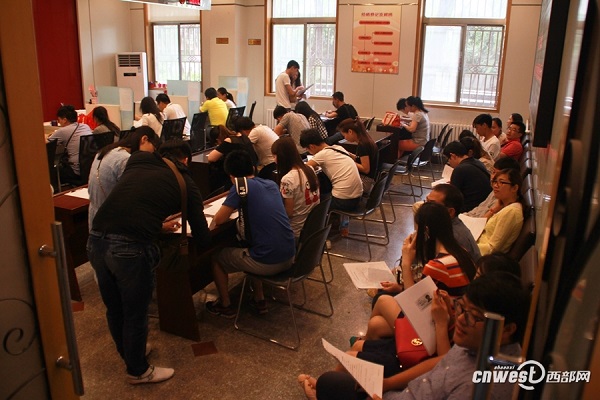 西部網記者在西安雁塔區(qū)婚姻登記處了解到,早上8點,前來領證的人已經排隊排出了院子,最早的凌晨四點就來排隊了。