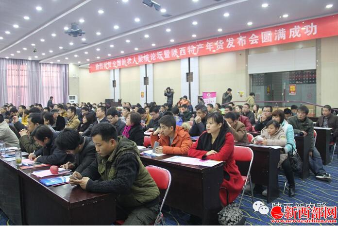 2015年1月18日,新農(nóng)人聯(lián)合會(huì)聯(lián)誼會(huì)暨陜西新農(nóng)人聯(lián)合會(huì)陜西特產(chǎn)年貨發(fā)布會(huì)在陜西省武功縣召開(kāi)。本次大會(huì)得到了陜西省、咸陽(yáng)市和武功縣多位領(lǐng)導(dǎo)支持,各位領(lǐng)導(dǎo)放棄休息時(shí)間親自到場(chǎng)參會(huì);全國(guó)各地新農(nóng)人代表參會(huì)并分享“干貨”;陜西省內(nèi)新農(nóng)人有的提前趕到,有的凌晨出發(fā),生怕錯(cuò)過(guò)每一個(gè)學(xué)習(xí)細(xì)節(jié)。開(kāi)會(huì)時(shí)間到時(shí),預(yù)留座位已經(jīng)坐滿(mǎn),過(guò)道加上臨時(shí)座位,有的朋友一直著。本次盛會(huì)參會(huì)人員超過(guò)300人,大家都珍惜這次機(jī)會(huì),帶著自家的寶貝產(chǎn)品現(xiàn)場(chǎng)交流、咨詢(xún)、學(xué)習(xí)。