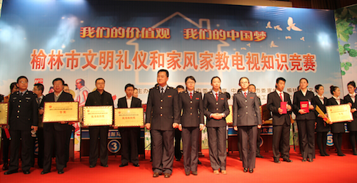新西部網(wǎng)榆林訊(記者王永程 王軒 邊婷婷)10月29日下午,由中共榆林市委辦公室、中共榆林市委宣傳部、榆林市創(chuàng)文辦、榆林市文明辦、中共榆林市直機(jī)關(guān)工委、榆林市文廣局主辦,榆林廣播電視臺(tái)承辦,榆林市書(shū)法家協(xié)會(huì)協(xié)辦的“我們的價(jià)值觀我們的中國(guó)夢(mèng)”榆林市文明禮儀和家風(fēng)家教電視知識(shí)競(jìng)賽決賽在榆林市委會(huì)議中心舉辦。來(lái)自榆林市各機(jī)關(guān)單位的36支代表隊(duì)伍中,榆林市地稅局、榆林市公安局交警支隊(duì)、榆林市能源局、榆林市政協(xié)、空港生態(tài)區(qū)管委會(huì)以及榆林市農(nóng)業(yè)局6支優(yōu)秀代表隊(duì)進(jìn)入決賽,在緊張激烈的競(jìng)技中榆林市地稅局脫穎而出榮獲冠軍。