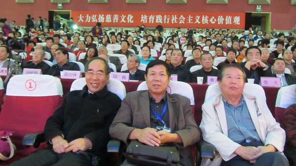 由陜西省慈善協(xié)會和陜西省音樂家協(xié)會聯(lián)合主辦的2014全省“愛心歌曲大家唱”群眾歌詠演唱大賽10月23日上午在西安舉行。前排左一系陜西省慈善協(xié)會副會長孫忠信,前排左二系《陜慈快訊》總編輯胡運森。新西部網(wǎng) 王順利攝
