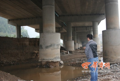 取砂過(guò)后裸露的高速公路高架橋橋墩實(shí)習(xí)記者陳永輝攝