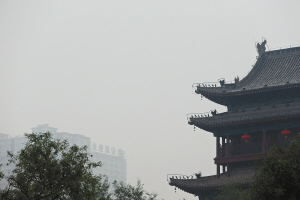 昨日,被霧霾籠罩下的古城 記者 侯智 攝