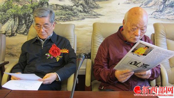 名譽(yù)會(huì)長(zhǎng)、中共陜西省委原副書記張保慶(右),名譽(yù)會(huì)長(zhǎng)、中國(guó)建筑西北設(shè)計(jì)研究院原院長(zhǎng)、中國(guó)工程院院士張錦秋(左)。新西部網(wǎng) 王順利攝