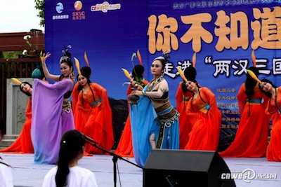 西部網(wǎng)訊(記者賀桐)今天(5月18日)下午,由陜西廣播電視臺(tái)都市青春頻道聯(lián)手陜西衛(wèi)視、西部網(wǎng)制作的2014年度鄉(xiāng)情文化探秘競(jìng)賽節(jié)目《你不知道的陜西》大型文化推廣活動(dòng)第二站如約走進(jìn)了人杰地靈的秀美漢中。古跡拜將臺(tái)首次迎來(lái)歷史人文舞臺(tái)劇《漢頌》的恢宏登場(chǎng),書法家草書繪“漢”字的精美與百名女大學(xué)生擺“漢”字的壯觀遙相呼應(yīng),共同再現(xiàn)了“兩漢三國(guó)真美漢中”的輝煌。