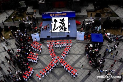 百名學(xué)生擺“漢”字渾厚“漢”字展雄風(fēng)
