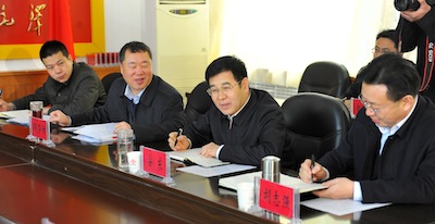 2014年3月7日,省委常委、省委政法委書記安東在榆林市佳縣座談?wù){(diào)研群眾路線教育和“三官一律”進社區(qū)等工作