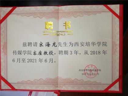 西安商網(wǎng)總編輯宋海龍受聘為西安培華學(xué)院客座教授