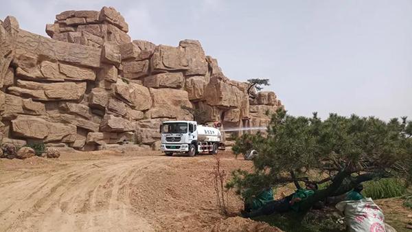 被通報后,韓城市邀請專家對西禹高速韓城出入口景觀提升工程假山部分“減、綠、隱、用”整改措施開展可行性研究,并拆除了投影機等相關(guān)設(shè)備。拆除了假山南北兩側(cè)瀑布水泵101個,水池填埋拉運土方1600余車,共計3.2萬立方,栽植白皮松、雪松、國槐等喬木300株,紅葉石楠球等灌木156株。