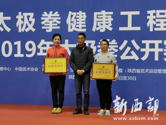 大賽期間,各代表隊(duì)交流拳道、弘揚(yáng)國粹,展示了太極拳武術(shù)的獨(dú)特魅力,體現(xiàn)了參賽拳友良好的精神風(fēng)貌,為表彰先進(jìn),樹立典型,進(jìn)一步傳播太極養(yǎng)生和全民健身理念,大賽組委會授予陜西、福建代表隊(duì)“武德風(fēng)尚獎”, 程保榮等21名運(yùn)動員獲“武德風(fēng)尚教練員獎”,安麗等48名運(yùn)動員獲“武德風(fēng)尚運(yùn)動員獎”, 吳彥林等4名裁判員獲“武德風(fēng)尚裁判員獎”。