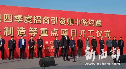 11月14日,鳳翔縣四季度招商引資項目集中簽約暨重點項目開工儀式在縣城西區(qū)陸港高端制造項目現(xiàn)場舉行。現(xiàn)場簽約項目總投資40.56億元共10個,集中開工的重點項目共25個,總投資32.08億元,年度投資3.52億元。