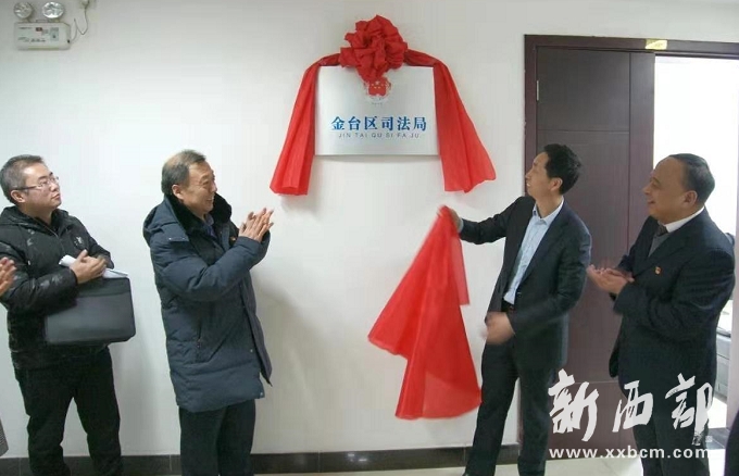 2、重新組建的金臺區(qū)司法局正式成立。2月20日,重新組建的金臺區(qū)司法局正式掛牌成立。今后,區(qū)司法局將在依法執(zhí)政、依法行政共同推進,法治政府、法治社會一體建設(shè)等方面,承擔(dān)更重責(zé)任、發(fā)揮更大作用。