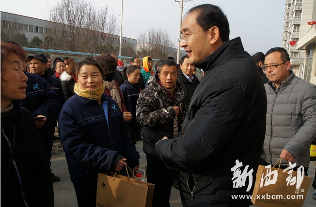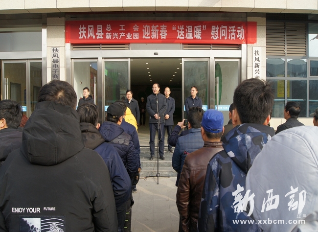 1月14日上午,市委常委、縣委書(shū)記周宇松,縣政協(xié)主席李拴鎖,縣委副書(shū)記傅宇,縣總工會(huì)主席王偉強(qiáng)一行深入縣新興產(chǎn)業(yè)園,為園區(qū)企業(yè)職工發(fā)放節(jié)日慰問(wèn)品100份,標(biāo)志著扶風(fēng)縣總工會(huì)2020年春節(jié)“送溫暖”活動(dòng)正式啟動(dòng)。
