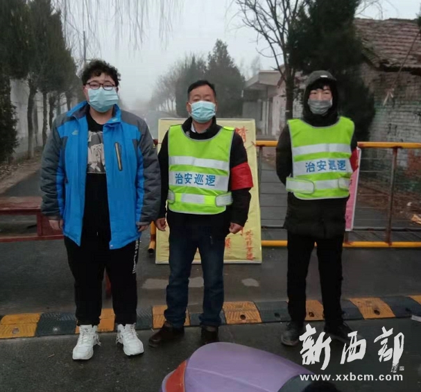 “您好,我們測(cè)量一下體溫。請(qǐng)問(wèn)您從哪開(kāi)車(chē)過(guò)來(lái),到哪里去,麻煩出示一下身份證件,配合我們檢查……”6日一早,因?yàn)橛晏斓木壒剩m已過(guò)8點(diǎn),但天空仍是朦朦朧朧的,不甚明亮,還伴有刺骨的寒風(fēng)。橫水鎮(zhèn)北務(wù)村路口疫情防控檢查點(diǎn)值班員程引奎正在核查路過(guò)的車(chē)輛和人員,他的兒子程佳樂(lè)在為車(chē)輛消毒。這里是村子與西寶北線(xiàn)交界大路口,也是北務(wù)村防控疫情流入的關(guān)鍵卡點(diǎn)之一。