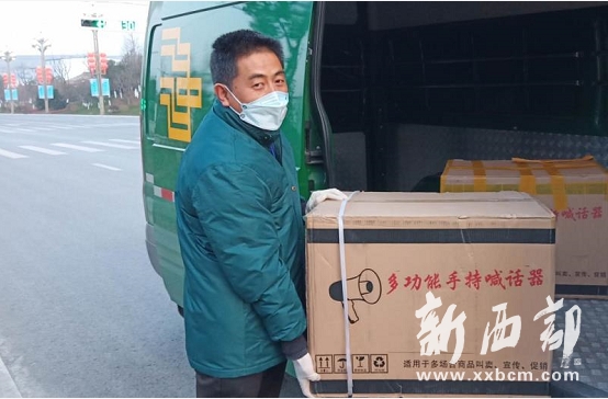 “岐山郵政公司,這里是縣新冠肺炎疫情防控指揮部,鳳鳴鎮(zhèn)采購了一批手持喊話器,是疫情防控急需物資,因道路封閉,社會物流車輛無法通行,請您們盡快將這批物資運回?!?月9日16:30接到指揮部電話,18:00,岐山郵政便將防控物資運抵鳳鳴鎮(zhèn)政府。