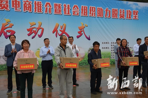 扶風縣政府縣長齊軍建宣布:消費扶貧電商推介暨社會力量助力脫貧攻堅啟動儀式啟動!現(xiàn)場爆發(fā)出經(jīng)久不息的熱烈掌聲。