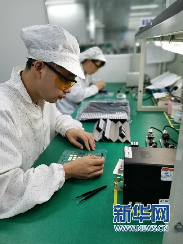 和其光電的生產(chǎn)人員正在檢驗(yàn)濾波片為模塊加工做準(zhǔn)備。(中科創(chuàng)星公司供圖)