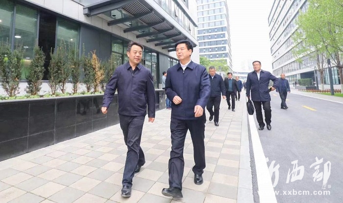2021年4月9日,寶雞市市長惠進才一行來到西咸新區(qū)灃西新城調(diào)研考察,灃西新城黨委書記、管委會主任劉宇斌,灃西新城黨委委員、管委會副主任萬寧參加。