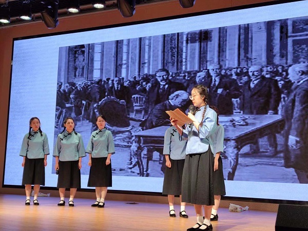“誓死力爭(zhēng) 還我青島……”一幕幕五四運(yùn)動(dòng)的場(chǎng)景呈現(xiàn)在觀眾眼前,情景劇《五四之光》使大家“沉浸式”體驗(yàn)了在動(dòng)蕩年代中革命先輩為崇高的理想而奮斗、將熱血與激情揮灑在革命事業(yè)的壯烈場(chǎng)景。