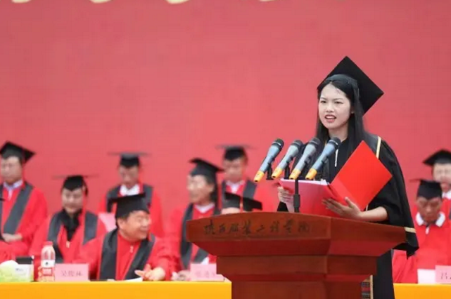 校長張義明教授代表校黨政向3836名學(xué)生順利畢業(yè)表示祝賀,向?yàn)楫厴I(yè)生成長成才付出辛勤努力的教職員工、家長朋友們表示衷心的感謝和誠摯的敬意。今年陜西服裝工程學(xué)院本科畢業(yè)生1312人,1287人獲得學(xué)士學(xué)位;820名??茖W(xué)生通過專升本考試;406名同學(xué)加入了中國共產(chǎn)黨;280名同學(xué)獲得國家獎(jiǎng)學(xué)金;47名同學(xué)獲得省級優(yōu)秀畢業(yè)生和學(xué)生干部稱號;本屆畢業(yè)生在全國大學(xué)生各類競賽中,榮獲一等獎(jiǎng)14項(xiàng),二等獎(jiǎng)42項(xiàng),三等獎(jiǎng)39項(xiàng)。張校長指出,畢業(yè)典禮是畢業(yè)生們踏上人生征程、履行社會(huì)責(zé)任的新起點(diǎn),也是離別母校時(shí)莊嚴(yán)的成人禮。在同學(xué)們即將踏上嶄新人生旅程之際,他真誠希望同學(xué)們始終保持一顆平常心、實(shí)現(xiàn)學(xué)子夢,以自信堅(jiān)定的步伐走向社會(huì),永遠(yuǎn)保持一顆進(jìn)取心實(shí)現(xiàn)人生夢,以一顆責(zé)任心助推中國夢,以昂揚(yáng)向上的姿態(tài)迎接未來,以敢于擔(dān)當(dāng)?shù)匿J氣書寫人生。