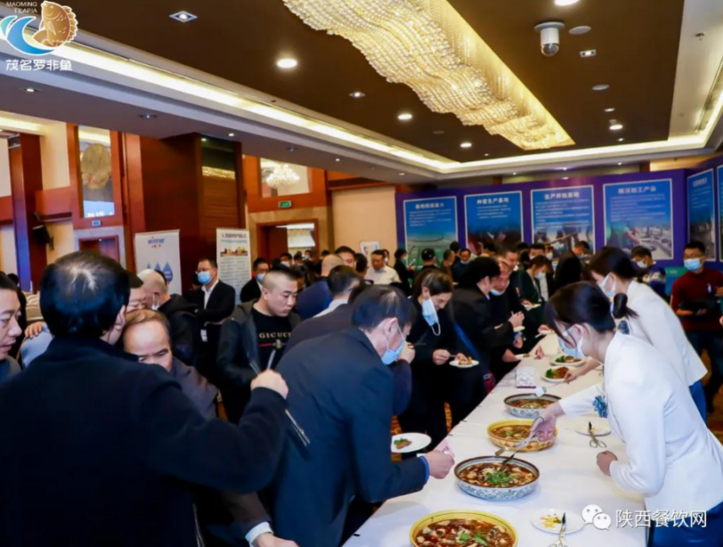 陜西省農(nóng)業(yè)農(nóng)村廳一級巡視員高武斌,陜西果業(yè)研發(fā)中心主任楊新文,茂名市農(nóng)業(yè)農(nóng)村局副局長黃衛(wèi)清,茂名市羅非魚協(xié)會會長王伯順,中國水產(chǎn)科學研究院珠江水產(chǎn)研究所水產(chǎn)專家謝駿,羅非魚企業(yè)代表,陜西省餐飲業(yè)商會支部書記、春發(fā)芽董事長楊忠良,執(zhí)行會長梁國義,常務副會長兼秘書長楊愛婷,陜西省清真食品商會,陜西省小吃協(xié)會,陜西省飲食營養(yǎng)協(xié)會,寶雞市餐飲飯店行業(yè)協(xié)會,西安欣橋市場以及陜西餐飲企業(yè),連鎖餐飲、團餐、經(jīng)銷商、海鮮市場、電商、商超、新聞媒體、自媒體等代表參加了本次推介會活動。