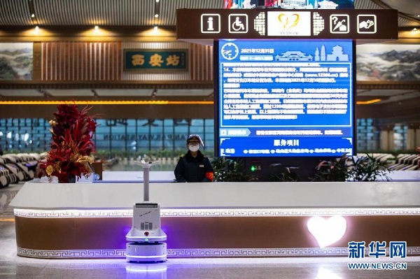 2021年12月31日,在改擴建完成投用的西安火車站,工作人員做好服務旅客準備。劉翔 攝