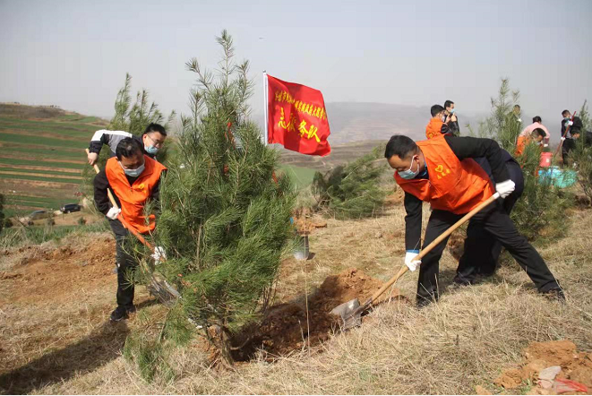 揮鍬掄鋤、挖坑填土、起壟澆水……3月28日,在鳳翔區(qū)靈山西坡上,黨員干部和群眾、志愿者正在栽植白皮松。
