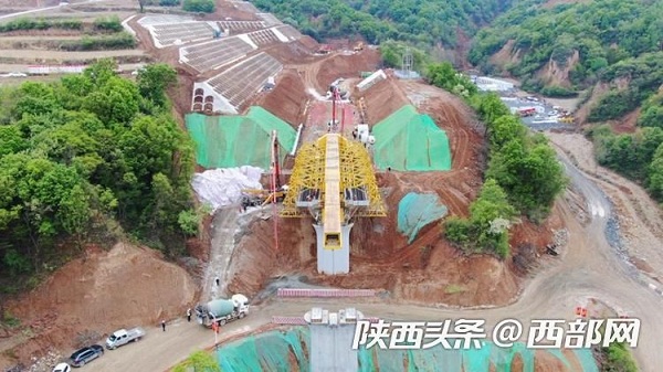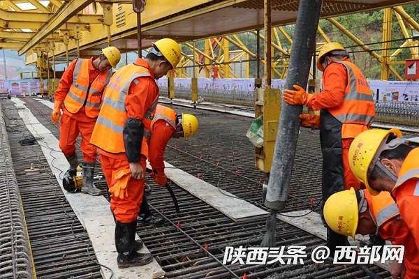 西延高鐵任家臺一號大橋箱梁澆筑現(xiàn)場。(王星輝 攝)