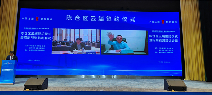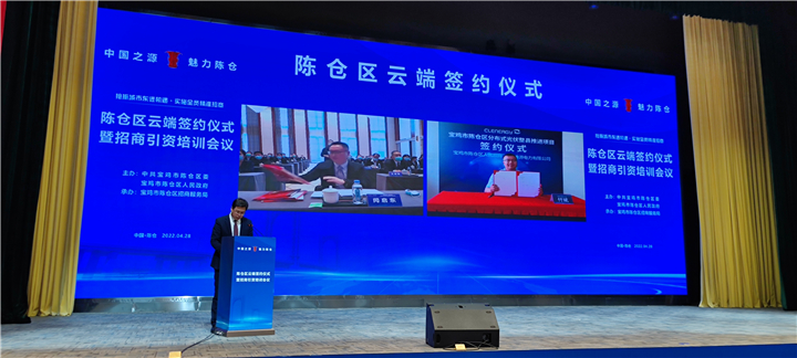 4月28日下午,陳倉區(qū)舉辦項(xiàng)目云端簽約儀式暨招商引資培訓(xùn)會(huì)。本次活動(dòng)的線下主會(huì)場設(shè)在陳倉奧斯頓酒店,相關(guān)企業(yè)、商會(huì)負(fù)責(zé)人在線上的分會(huì)場以視頻方式同步參加。