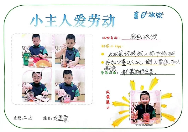 老師和孩子們總結(jié)了暑假大隊部安排的“假期小主人”活動中“我們愛勞動”的環(huán)節(jié),孩子們在一起分享交流了假期做涼拌菜、做冰飲的感受和收獲。紛紛表示,勞動雖然很辛苦卻也很有趣,以后要多學(xué)勞動技能,成為家人的小幫手。
