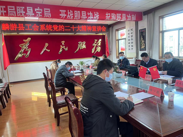 廣泛開(kāi)展黨的二十大精神宣講。一是11月17日舉辦了全縣工會(huì)系統(tǒng)黨的二十大精神視頻宣講會(huì),邀請(qǐng)中共寶雞市委黨校副校長(zhǎng)童力沖以《擘畫(huà)強(qiáng)國(guó)藍(lán)圖開(kāi)創(chuàng)偉大復(fù)興征程》為題解讀了黨的二十大精神。各鎮(zhèn)總工會(huì)、各局工委工會(huì)、縣級(jí)國(guó)家機(jī)關(guān)、各人民團(tuán)體工會(huì)、現(xiàn)屬企事業(yè)單位工會(huì)主席、工會(huì)干部、社會(huì)化工會(huì)工作者,縣總工會(huì)全體干部共170余人參加,迅速掀起了學(xué)習(xí)貫徹黨的二十大精神高潮,著力把工會(huì)組織打造成政治型機(jī)關(guān)。二是組建了以工會(huì)主席為團(tuán)長(zhǎng),副主席為副團(tuán)長(zhǎng),各級(jí)勞動(dòng)模范、寶雞工匠、技術(shù)能手等為成員的麟游縣總工會(huì)勞模宣講團(tuán),在全縣各基層工會(huì)廣泛開(kāi)展黨的二十大精神宣講。三是要求各級(jí)工會(huì)組織利用職工大會(huì)、職代會(huì)、企業(yè)班組會(huì)等靈活多樣的形式開(kāi)展黨的二十大精神宣講,要讓黨的二十大精神進(jìn)社區(qū)、進(jìn)農(nóng)村、進(jìn)工廠、進(jìn)企業(yè)、進(jìn)班組、進(jìn)車間,入腦入心。四是縣總機(jī)關(guān)干部職工深入所包扶村進(jìn)村入戶開(kāi)展宣講,讓黨的二十大精神進(jìn)千家萬(wàn)戶。
